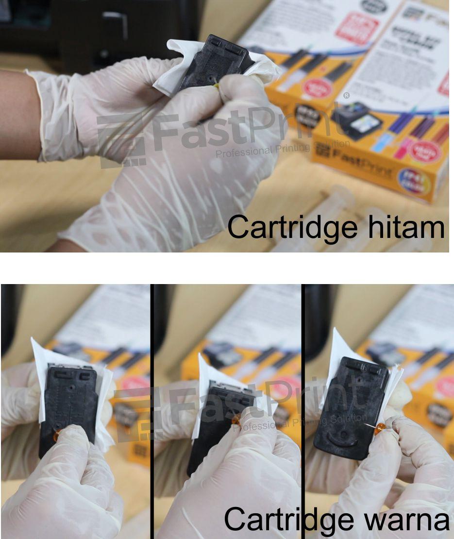 Untuk cartridge tinta hitam, biasanya ada satu lubang saja. Sedangkan untuk cartridge warna, ada 3 lubang untuk masing-masing warna tinta magenta, yellow, dan cyan.