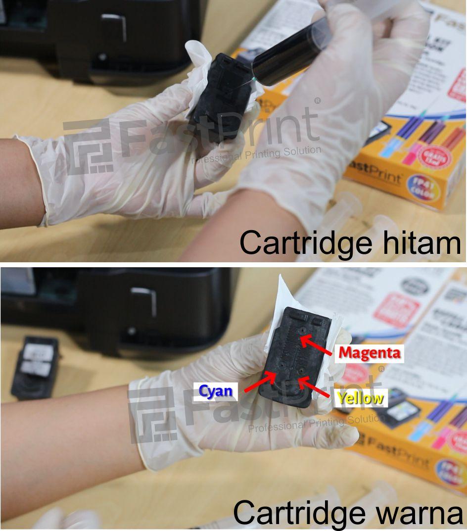 Pastikan isi dengan hati-hati ya, jangan sampai salah memasukkan warna dan masukkan tinta dalam jumlah yang tepat agar tidak tumpah. Kalau tumpah, tinta bisa bercampur dengan warna lain.