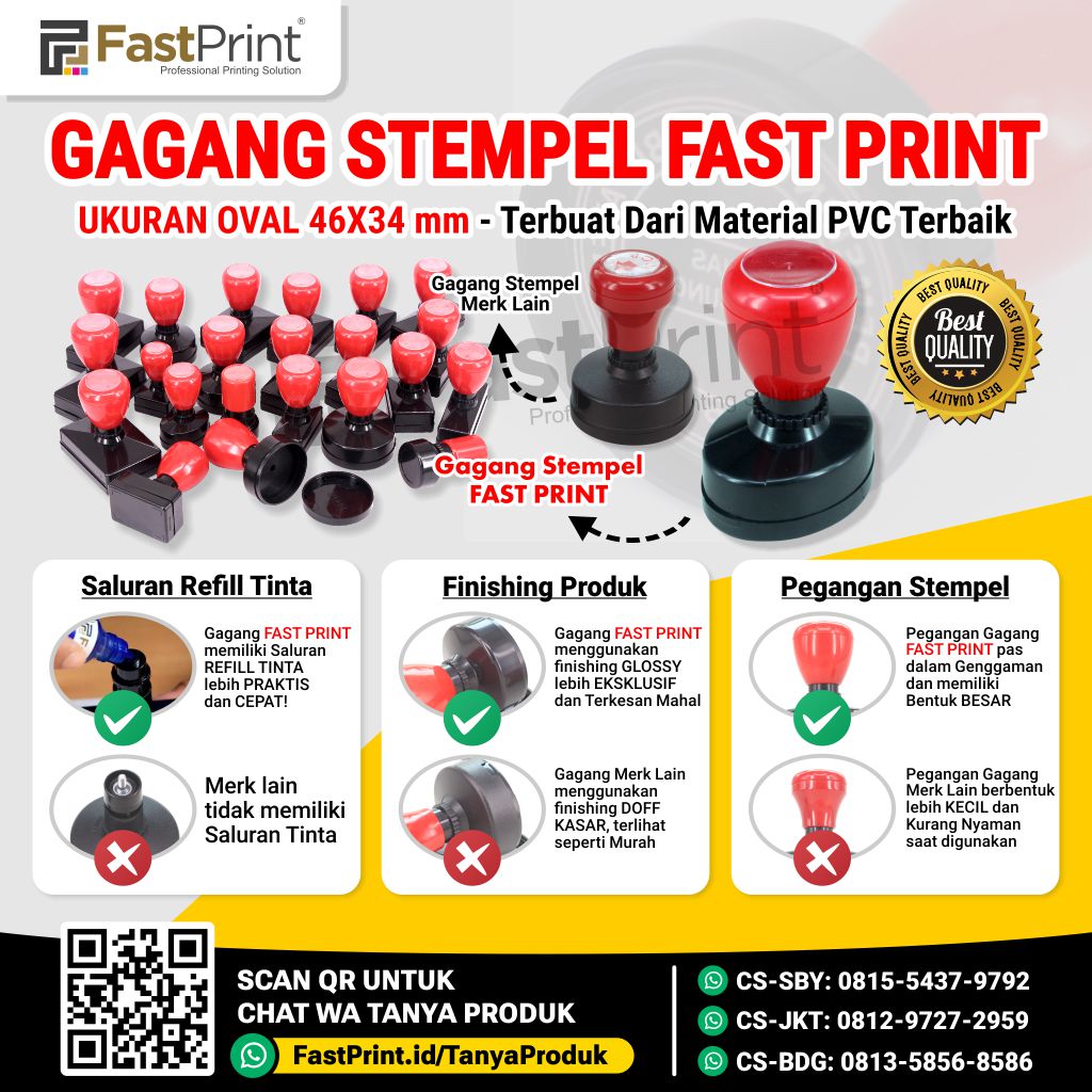 Fast Print menyediakan Gagang Stempel Flash berbagai macam ukuran dengan BENTUK PEGANGAN LEBIH BESAR sehingga NYAMAN DIGUNAKAN serta dilengkapi SALURAN REFILL TINTA untuk MEMPERMUDAH PENGISIAN TINTA STEMPEL.